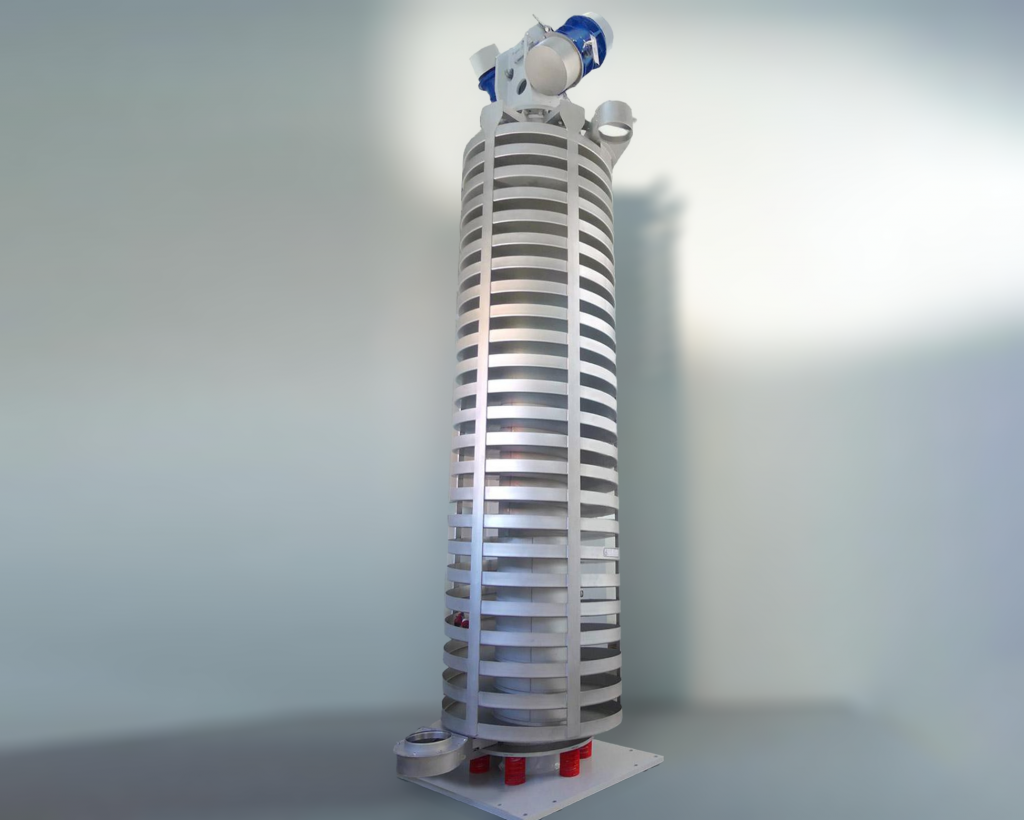 - „Senkrechtes Fördern“ von Schüttgütern und anderen Massenteilen im Wendelförderer
