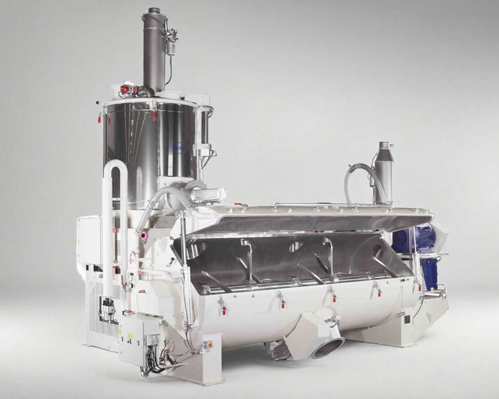 - Kontinuierliches und diskontinuierliches Mischen, Agglomerieren, Granulieren und Befeuchten von Feststoffen in Horizontal- und Vertikal-Mischern